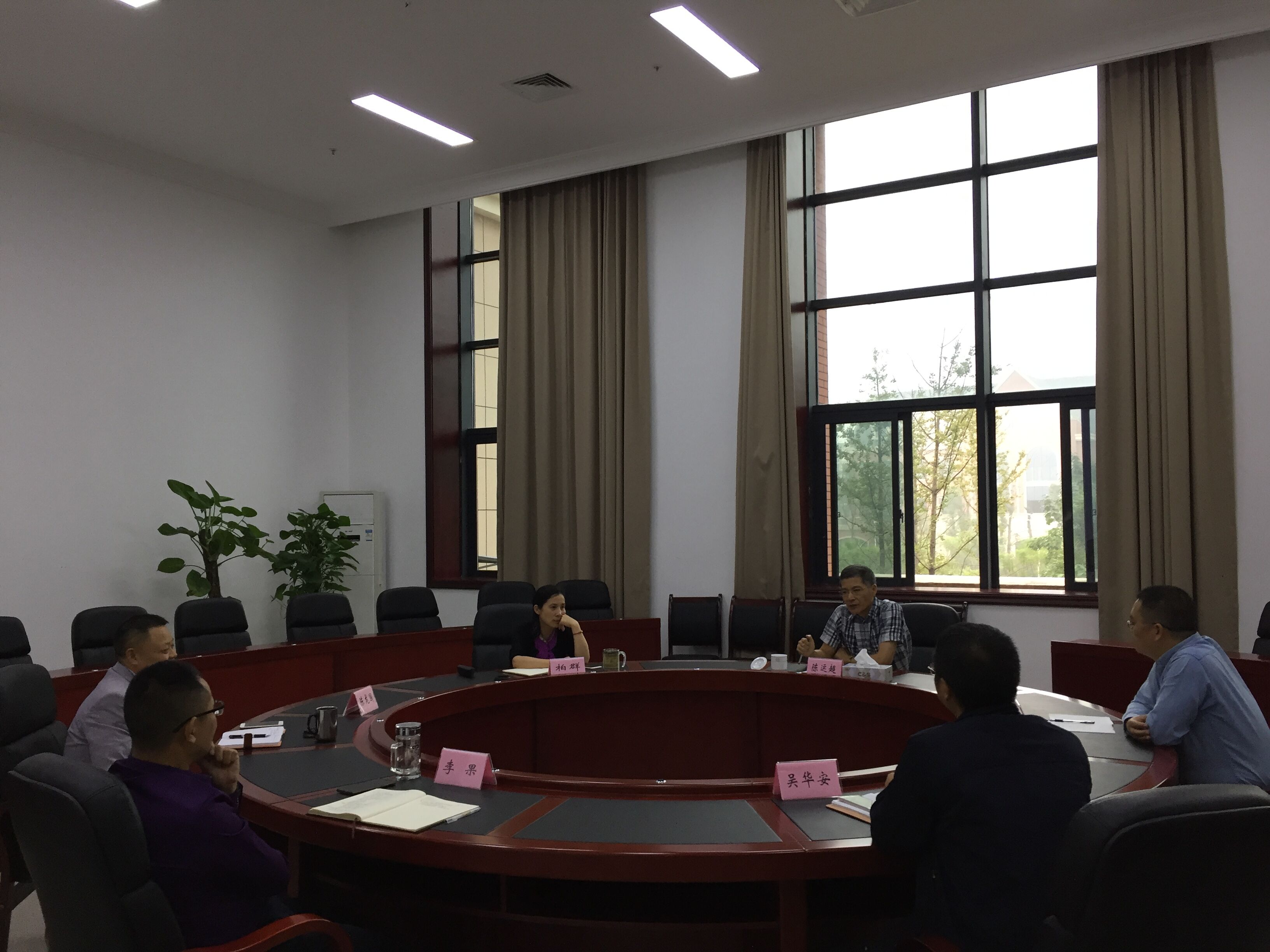 陈运超副校长在学校柏群校长和其他班子成员的陪同下,对学校进行了走访查看。随后,在学校1207会议室,听取了学校班子成员工作汇报。