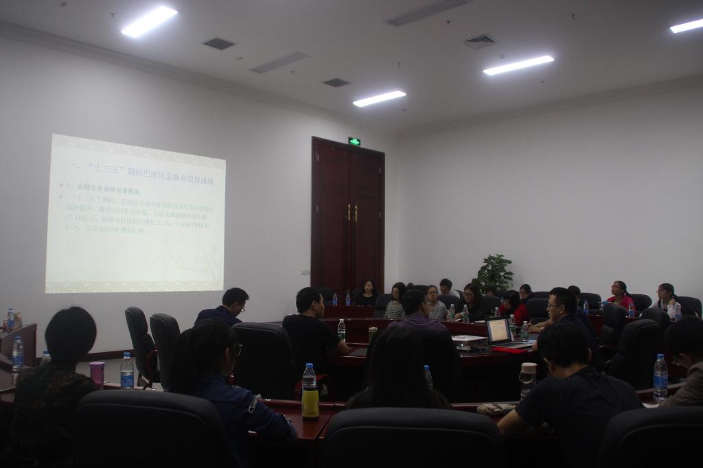 在热烈的掌声中,本次讲座正式开始,叶主任首先向大家介绍了金融发展中心的工作性质、内容以及工作情况,并向大家介绍了“十三五”期间巴南区金融业取得的成绩。