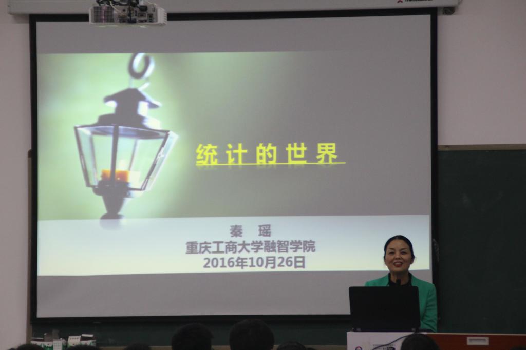 重庆市统计局党组成员、副局长、高级统计师秦瑶教授携两位研究生在教学楼1506教室为学院2015、2016级经济统计学专业的同学作了一场以《统计的世界》为题的专业讲座。