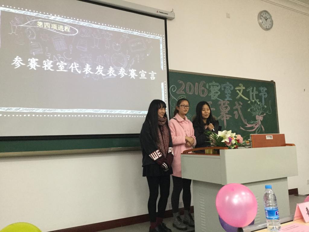 在主持人简短的开场白后,一段2015年寝室文化节的精彩瞬间回顾的视频映入了大家的眼帘,犹见视频中的学长学姐们个个都活力四射,斗志昂扬,不禁感染了参与这届寝室文化节的小伙伴们。紧接着,是由会计学院学生会生活部部长杨晓梦为同学们介绍本次活动的一些相关情况和说明,此次寝室文化节共分为四个板块:有增强寝室成员团结协作能力的融智大富翁游戏;有培养审美情趣的手艺大比拼;有利于同学们营造干净舒适的学习和生活环境的寝室文明卫生评比;有展示寝室团队成员风采的才艺秀。随后,各个参赛寝室也都纷纷上台介绍了自己所在寝室并发表了参赛宣言。最后,学生处处长唐川川做了讲话并宣布正式开幕。唐处长强调学校高度重视寝室文化建设,希望同学们在此次活动中不仅发挥自己的聪明才智,也要培养团队意识,增进同学间的友谊,并衷心预祝本次寝室文化节取得圆满成功。