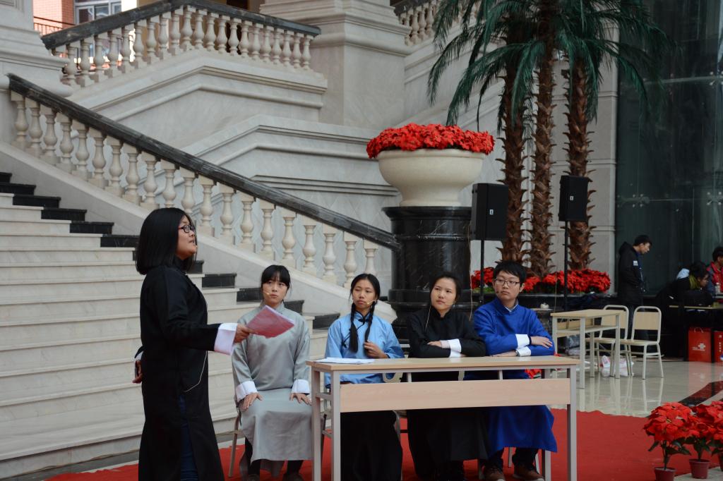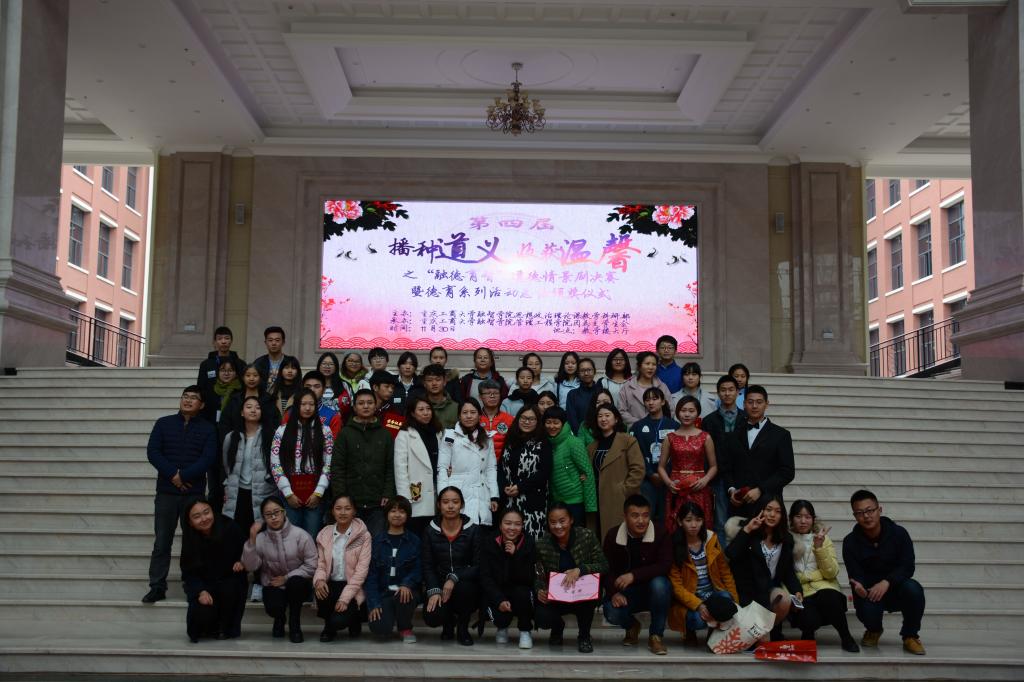 通讯员 冯秀琴)播种道义复兴之源,收获温馨校园之家。11月30日中午12:10,由我校思政部主办,管理工程学院承办的“播种道义,收获温馨”系列活动之“融德育智”道德情景剧决赛暨颁奖典礼在教学楼大厅落下帷幕。本次活动邀请到了学生处处长唐川川、思政部主任常晓薇、思修教研室副主任周敏、学生处学生科科长杨惠琳担任评委。出席本次活动的嘉宾有学生处副处长兼校团委书记李刚、商务学院党总支副书记宋湘琴、管理工程学院党总支副书记高雪莲、管理工程学院综合办公室副主任范雪林。