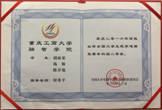 (通讯员 何静)近日,2016年全国大学生数学建模竞赛获奖名单揭晓。在本次竞赛中,我共派出6组参赛队,经过激烈角逐,获得本科组全国二等奖1项,重庆市一等奖2项,二等奖1项的佳绩。