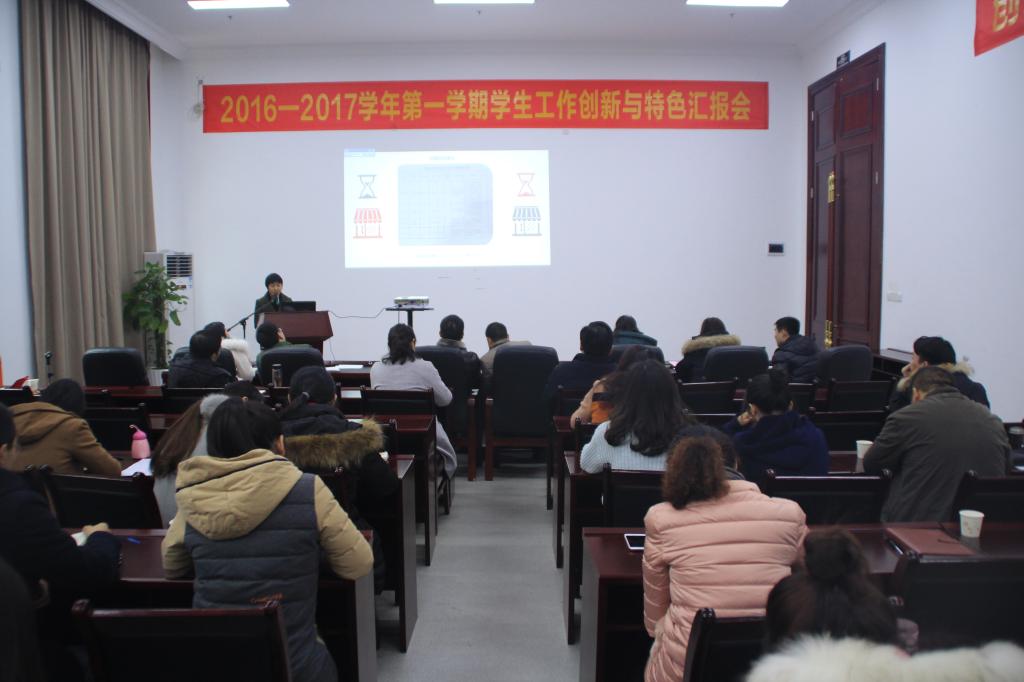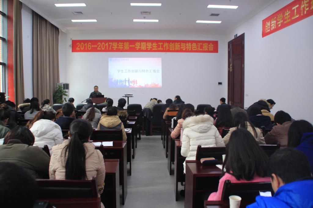 (通讯员 杜青林 黄明鑫)2016年12月22日上午,我校2016-2017学年第一学期学生工作创新与特色汇报会在教学楼1206会议室顺利召开。校党委书记丁广龙、党委副书记陈龙国、校长助理房朝君、学生处处长唐川川、学生处副处长李刚、各学院党总支副书记、各学院学团办/综合岗(副)主任及各学院专职辅导员出席本次会议。此次会议由学生处处长唐川川主持。
