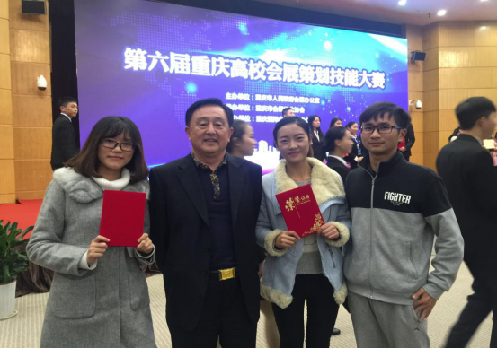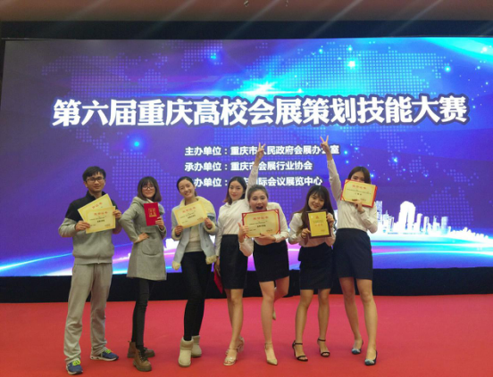 同时,15级会展经济与管理专业的牟智权、古雁玲、查榆三名同学还在文案策划比赛中获得三等奖刘晶、金珂、古雁玲、查榆四名同学获得重庆市会展专业优秀大学生称号;张红梅老师获得讲课比赛一等奖,王慧蕾老师荣获优秀指导老师称号