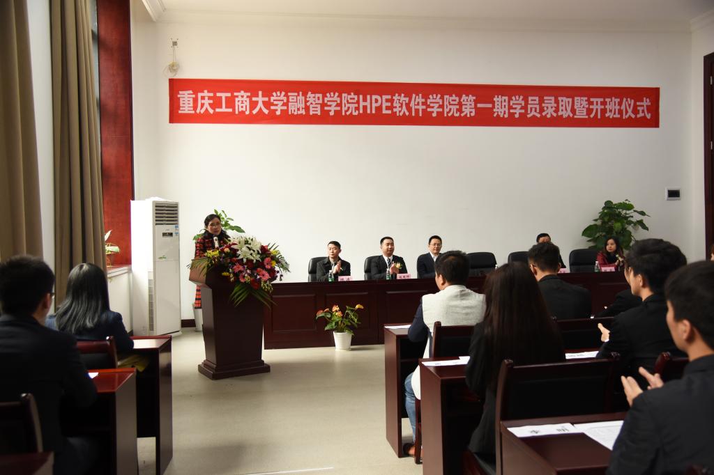 12月29日中午,重庆工商大学融智学院HPE软件学院第一期学员录取暨开班仪式在1206会议室隆重举行,HPE软件教育大中华区总监严勇、HPE软件集团高级顾问兼软件教育项目总监赵国帅、HPE软件教育项目西南区技术总监陈迪,以及重庆工商大学融智学院院长柏群教授、副院长吴华安博士出席本次活动。会议由重庆工商大学融智学院继续教育学院副院长曾真主持。