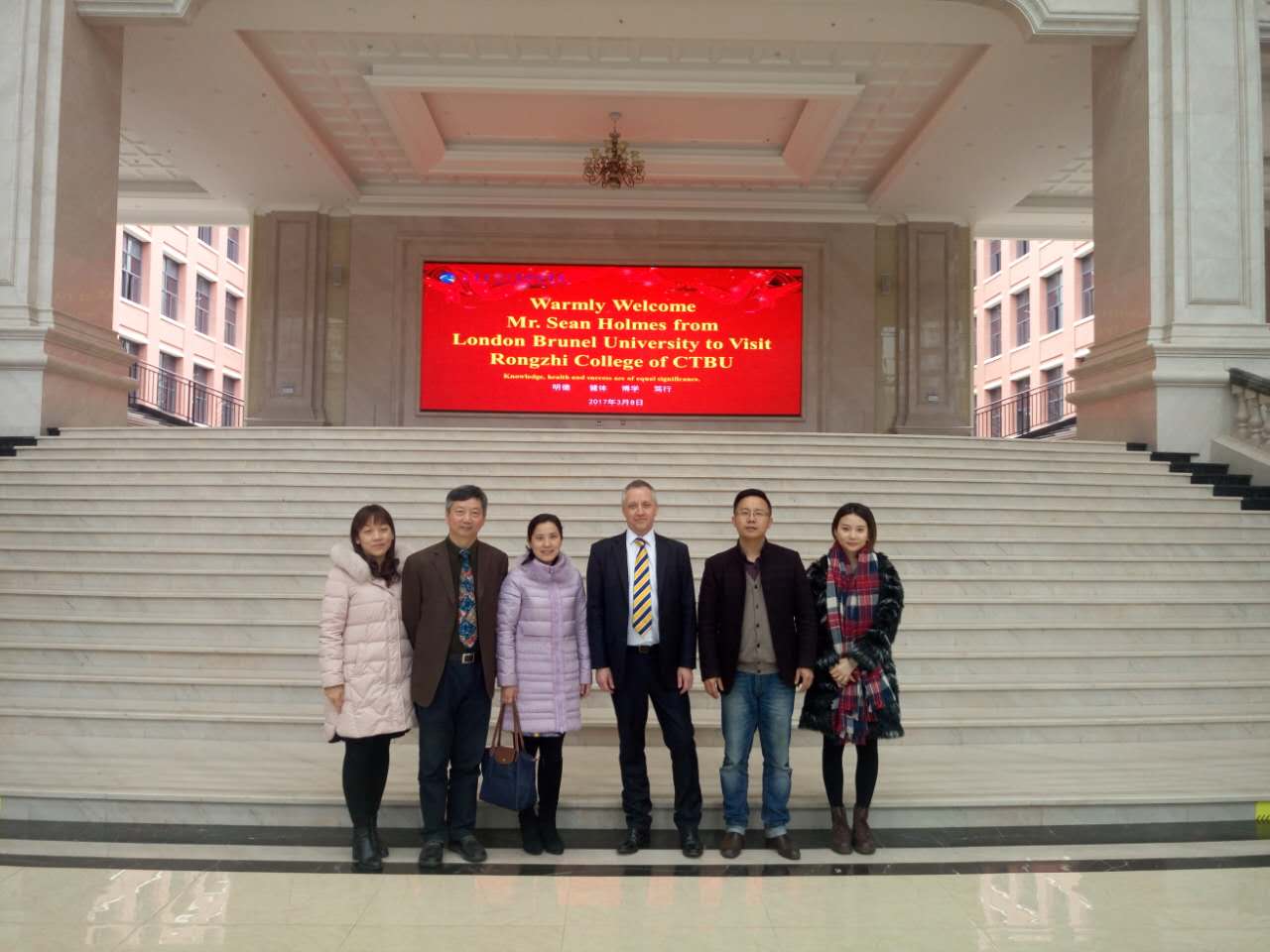 2017年3月8日上午9:30,英国布鲁内尔大学商学、艺术以及社科院副院长肖恩·霍姆斯(Sean Holmes)在重庆市教育国际交流协会会长乐勇教授、重庆市教育国际交流协会服务中心主任谢世波先生等一行的陪同下,到我校访问并洽谈合作。我校柏群院长、国际合作交流处石转转处长接待了来访嘉宾。