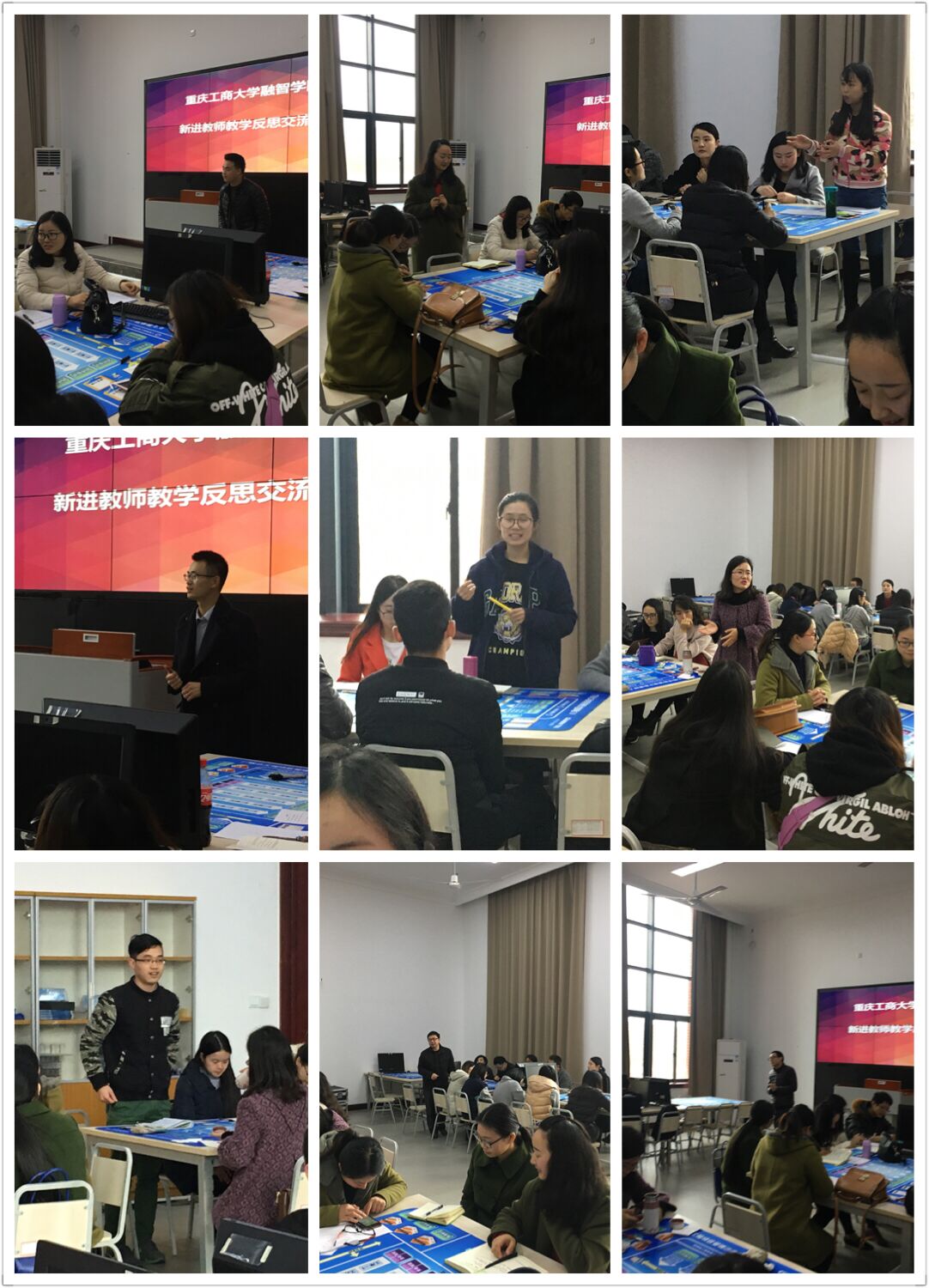 新进教师代表李辉、李占凤、宋潇等结合自身在教学过程中的经历和遇到的各类问题进行教学反思,并与参会教师们开展交流,大家普遍认为在授课计划安排、教学进度的把握及授课方法等方面还需要得到导师们的指导。导师代表李倩、纪同辉等也分别从课前备课、课堂节奏的把握、具体教学方法以及课堂管理等方面分享了自己的教学经验,给出了非常实用的方法及建议。