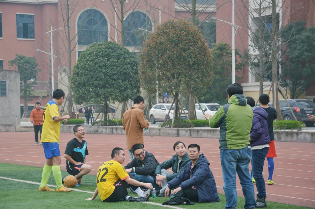 比赛前,会计学院各位队员换上了他们的绿色战衣,各位老师也穿上了自己的球服,不得不说,当他们换上运动服的那一刻,好像跟学生们一般年龄大小。做好准备活动之后,比赛拉开帷幕。比赛伊始,双方都比较保守,处于试探性阶段,你来我往,随着双方对对手球风的渐渐了解,剖析对手的排局布阵之后,比赛愈加激烈,双方球员渐入佳境,不时打出精妙的配合和有攻击性的射门。教师队的老师脚下功夫了得,无论是抢球、传球,还是射门,都气势不凡。当然会计学院足球队也不甘示弱,凭借着自己时常训练出来的技术,和充沛的体力,与教师队卯足劲儿比拼。经过半场赛事的激烈角逐,终于到了中场休息时间,小记者们走到队伍中间,采访了一位老师,据老师介绍,以后的每一个周五,他们都会和来自不同院别的足球队pk,这不仅是有助于身体的锻炼,还可以拉近师生距离,通过比赛的方式和同学们增进师生情谊。