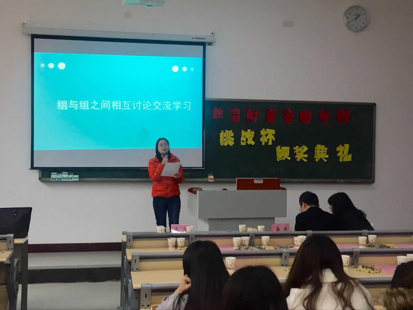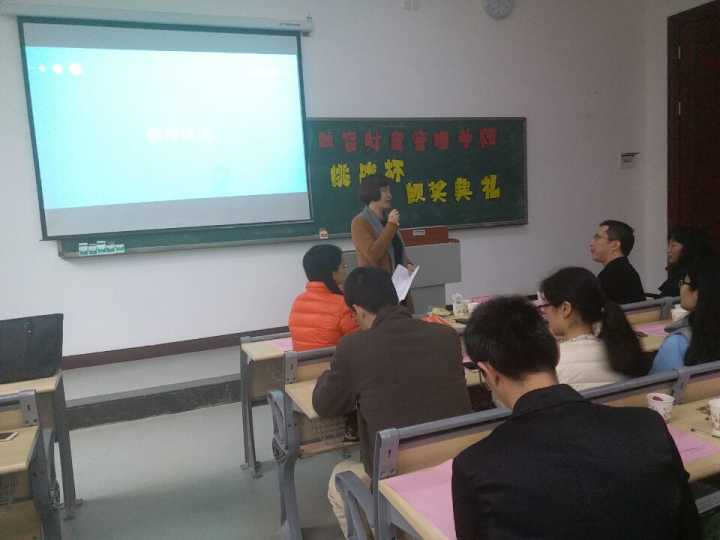本次活动由三个环节组成。第一个环节是教师座谈会,指导老师们就“挑战杯”竞赛过程中的指导心得与感想进行了交流,同时从大赛宣传以及指导过程等方面出现的不足提出了中肯的意见。第二个环节是颁奖典礼,教师座谈会完后,全体参赛学生入场,颁奖典礼正式开始,在老师们逐一为获奖团队颁奖,之后学术带头人章教授进行了讲话,她在讲话中肯定了师生们的辛勤付出,并对同学们提出了殷切希望,希望同学们抓住挑战杯的机遇,珍惜老师指导的机会,主动跟老师联系,在不断改进中提升自己。第三个环节是学生座谈会,座谈会上各参赛队分别派代表畅谈“挑战杯”的收获并提出了宝贵的建议;副院长赵娜、党总支副书记莫险峰、学团办副主任宋钰静分别就同学们的建议进行回复,强调参与“挑战杯”既可以提升自己科研能力,同时对以后考研、就业有很大帮助。在参与的过程同学们虽然很辛苦,但无形中却收获更多知识,并希望同学们勇敢尝试,不断挑战,总结经验,积极营造学生科技创新的浓厚氛围,在下一届比赛中能有更大收获。