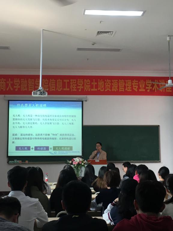 为丰富我校土地资源管理专业专业知识提升专业实践能力,适应社会发展需求4月7日15时,信息工程学院特邀请到重庆市国土资源和房屋勘测规划院遥感所主任工程师胡勇博士前来我校,1311教室开展了“国土资源无人机遥感监测与应用”为题的专业讲座。学院院长周启刚、副院长姜文、党总支副书记叶远帆以及土地资源管理专业全体专职教师、辅导员、2016、2015级学生参加了本次讲座。
