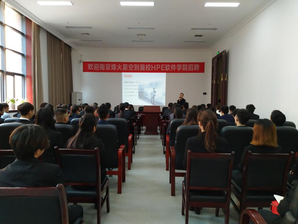 宣讲会上烽火星空研发部经理徐蛟介绍了公司的概况、职业发展方向、职位需求、现有产业结构、组织构架、薪金待遇、工作环境、等内容。会后同学们积极踊跃投递了简历。针对有意愿进入烽火星空的73名同学,进行了笔试和面试三轮测试。最终有10名优秀学员(7名大四学员、3名大三学员)被正式录取,并确认大四学员于培训结束后立即全方位实习,大三学员于培训结束后立即进行阶段性实习培养。