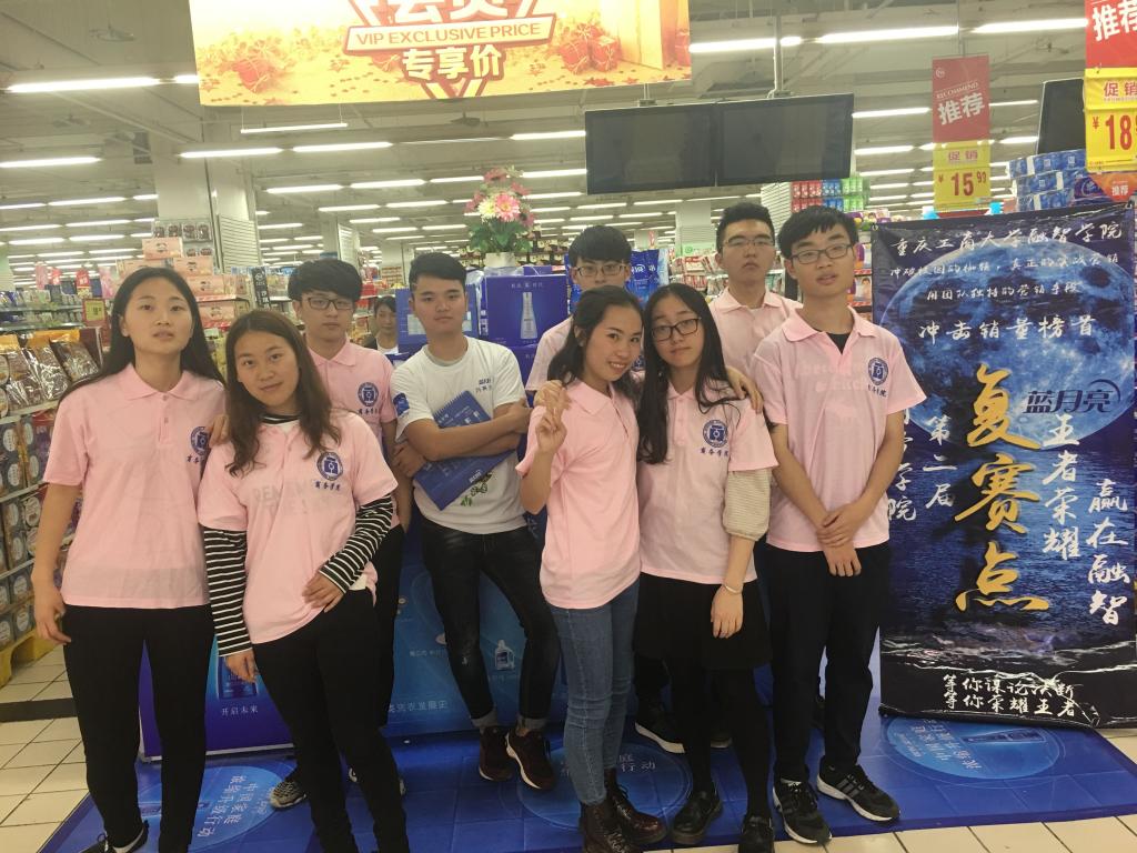 4月22-23日,由重庆工商大学融智学院商务学院主办的第二届“校园创意营销大赛”进入复赛环节,10支胜出的队伍两两一组,来到主城5家大型超市进行实战销售。