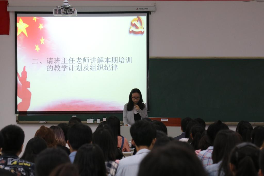 5月5日中午12:15,我校第二十一期党的知识培训班开班典礼在教学楼1406教室圆满举行。我校党委书记丁广龙,携学校各党总支、直属党支部书记出席了开班典礼,此次开班典礼由党群工作部倪倩茜主持。 在雄壮而响亮的国歌声中,本期开班典礼正式拉开帷幕。主持人倪倩茜老师向全体学员介绍与会领导后,本期培训班班主任夏文瑞老师就本期培训班的基本概况、组织纪律以及教学计划进行了详细的讲解,并对此次的参训学员提出了十分严格的要求。随后,参训学员代表——戴已寒同学上台发言,他的讲话中表现出了他自己对追随党的信心与决心,并且他在讲话中也表示自己将以身作则,坚决跟随党组织的脚步和拥护党的决定,带头认真学习好本次培训中党的知识,珍惜这次来之不易的机会,也争取早日向党组织靠拢。 随后,校党委丁广龙书记对此次开班典礼进行致辞,丁书记首先提到热播剧《人民的名义》为切入,要求各位参训学员首先要端正入党动机,树立正确观念,要具备强烈的责任感和奉献精神,从精神上向党组织靠拢;他业号召大家认真学习党的知识,自觉贯彻党的纲领,把学习与实践相结合。其次,要求大家要以党员的标准要求自己,自觉贯彻党的纲领,从行动上向党组织靠拢;再次,要关注时事,开阔视野,渊博自身科学文化知识、提升自身政治素养,从素质上向党组织靠拢;丁书记也希望各位学员都成为可靠的党的接班人,并预祝本期党的知识培训班能够圆满成功,也祝各位学员通过本次培训,能够使自身的党性修养得到增强,自身的综合素质得到全面提升。 最后,党的知识培训班开班典礼在激动人心的《国际歌》的歌声中落下了帷幕。本期党的知识培训班参训学员300余人,在本次开班典礼结束后将正式开始本期培训班的正授课。本次培训班将和上次一样划分为2个班平行授课,并将在为期一月的时间内进行行8次授课。相信在环境优美的新校区里进行培训后,能够使同学们的入党动机更加端正、单纯,使同学们的入党信念更加坚定不渝,使同学们的党性修养将进一步增强,优良作风将进一步牢固,工作能力进一步提高,使党的创造力,凝聚力能够不断增强!