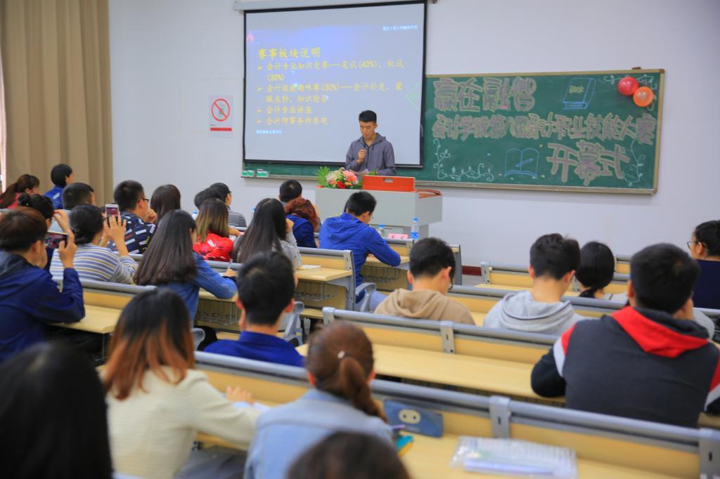 天街小雨润如酥,草色遥看近却无。4月25日中午1210,会计学院第八届会计职业技能大赛开幕式教学楼506教室如期举行。会计学院院长谢付杰党总支副书记姚转花学团办主任李兰专职辅导员陈倩茹、游登贵、蔡婷、谭白冰、唐凤芬出席了开幕式。