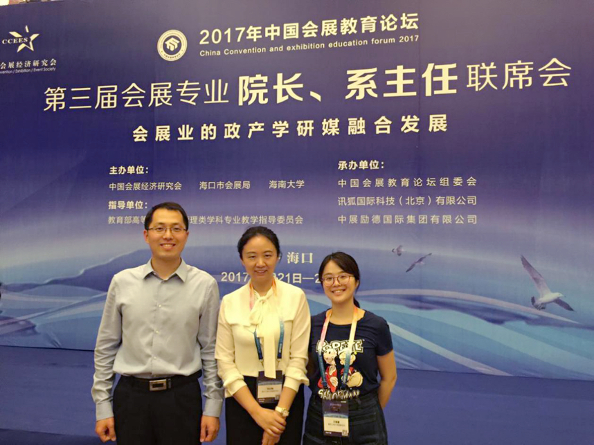 2017年4月21日-4月23日,中国会展经济研究会第十二届年会暨中国会展经济论坛在海南省海口市召开。我校商务学院院长张红梅和专职教师王慧蕾参加此次论坛。张红梅院长获得“2016年度中国会展教育优秀人物奖”(本科组)并作主题发言。