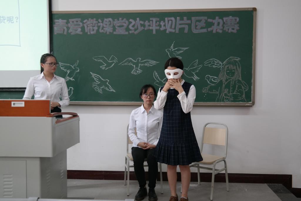 2017年5月19日14:30,重庆市第八届大学生成长论坛之青爱微课堂沙坪坝片区决赛在我校教学楼1321教室顺利举行。本次比赛由四川外国语大学心理中心专职咨询师张云喜、石巧品老师和我校思政部常晓薇主任、学生处杨惠琳老师担任评委,特邀我校思政部刘璐静老师、教务处刘洁老师、会计学院专职辅导员陈倩茹老师、心理健康教育与咨询中心李英老师担任点评嘉宾。