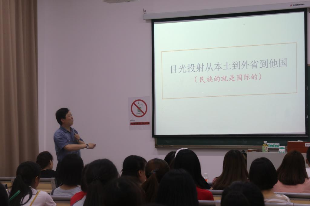 5月19日下午 14:30-16:00,由我校国际合作交流处举办的国际文化交流月系列活动讲座三之“坐井岂能不观天?—从中外天下观看当代大学生国际视野养成”讲座在教学楼1405室顺利举行;此次讲座嘉宾为上海外国语大学硕士生导师、上海外语教育出版社副主编张宏教授。