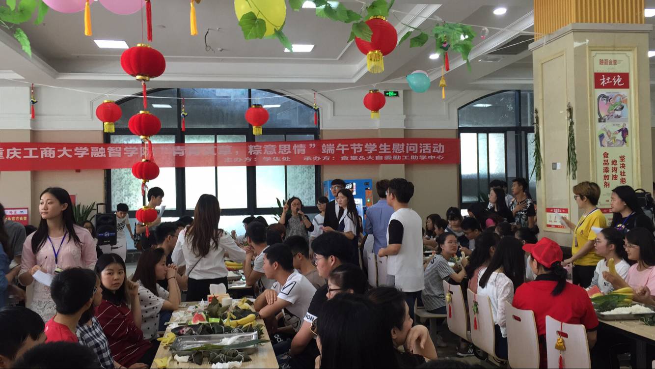 心系贫困生,慰问送真情。5月27日12:30,我校在食堂成功举办了“青青艾草,粽意思情”端午节贫困生慰问活动。学生处处长唐川川、学生处副处长兼团委书记李刚、经济学院党总支副书记乐晓勇、信息工程学院党总支副书记叶远帆、财富管理学院党总支副书记莫险峰、管理工程学院党总支副书记高雪莲、物流工程学院党总支副书记李喆及各学院资助专员、辅导员老师等受邀参加了本次活动。