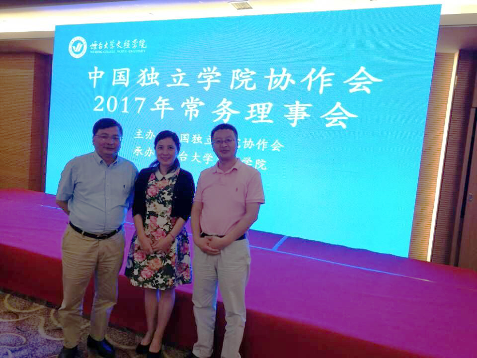 5月27日,中国独立学院协作会2017年常务理事会在烟台大学文经学院隆重召开。教育部、中国民办教育协会、省教育厅以及烟台市委市政府等各方高度重视本次会议,全国人大常委、全国人大教科文卫委员会副主任委员、民进中央副主席、中国民办教育协会会长王佐书作主题报告,中国教育发展战略委员会执行会长、教育部政策法规司原司长孙霄兵作重点发言,教育部高等教育教学评估中心原主任、中国民办教育协会高等教育专业委员会理事长季平致开幕辞。山东省教育厅民办教育与继续教育处副处长赵远征,中国独立学院协作会常务理事、副会长尹大家,烟台市副市长金志海,烟台大学副校长邓昌亮,烟台大学文经学院董事长辛军、院长于光辉等领导出席开幕式。开幕式由中国独立学院协作会会长、云南大学滇池学院院长马杰主持。我校柏群院长、吴华安副院长作为常务理事单位应邀参加此次会议。