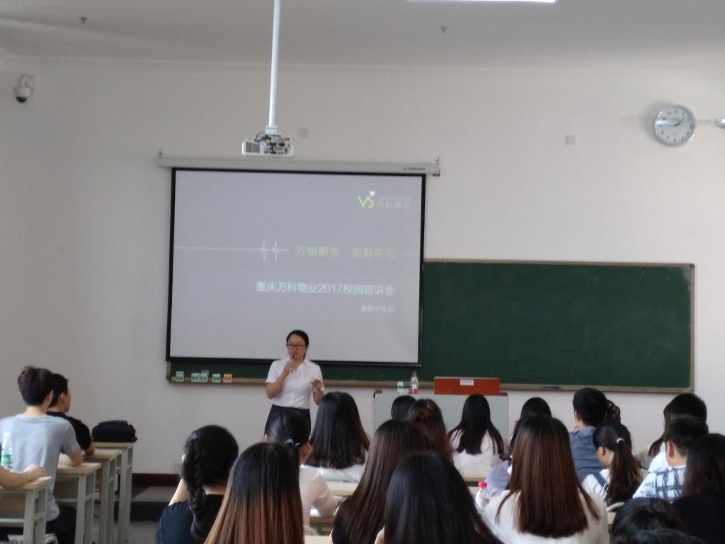 为了向学生提供更好的就业机会,帮助企业招到对口人才, 2017年5月26日,成都万科物业服务有限公司重庆分公司在我校1311教室召开宣讲会。我校物业管理专业全体学生积极参加了此次宣讲会。