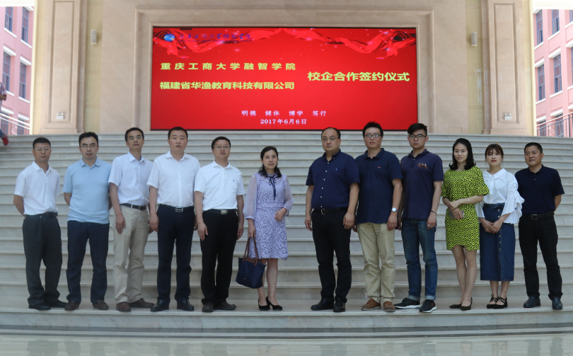 6月6日14:20,重庆工商大学融智学院与福建省华渔教育科技有限公司校企合作协议签约仪式,在1205会议室隆重举行,校长柏群,副校长吴华安,校长助理李春雷,教务处处长崔中山,教育信息技术中心主任周雄,福建省华渔教育科技有限公司全国销售总监张涛等参加了会议,会议由副校长吴华安主持。