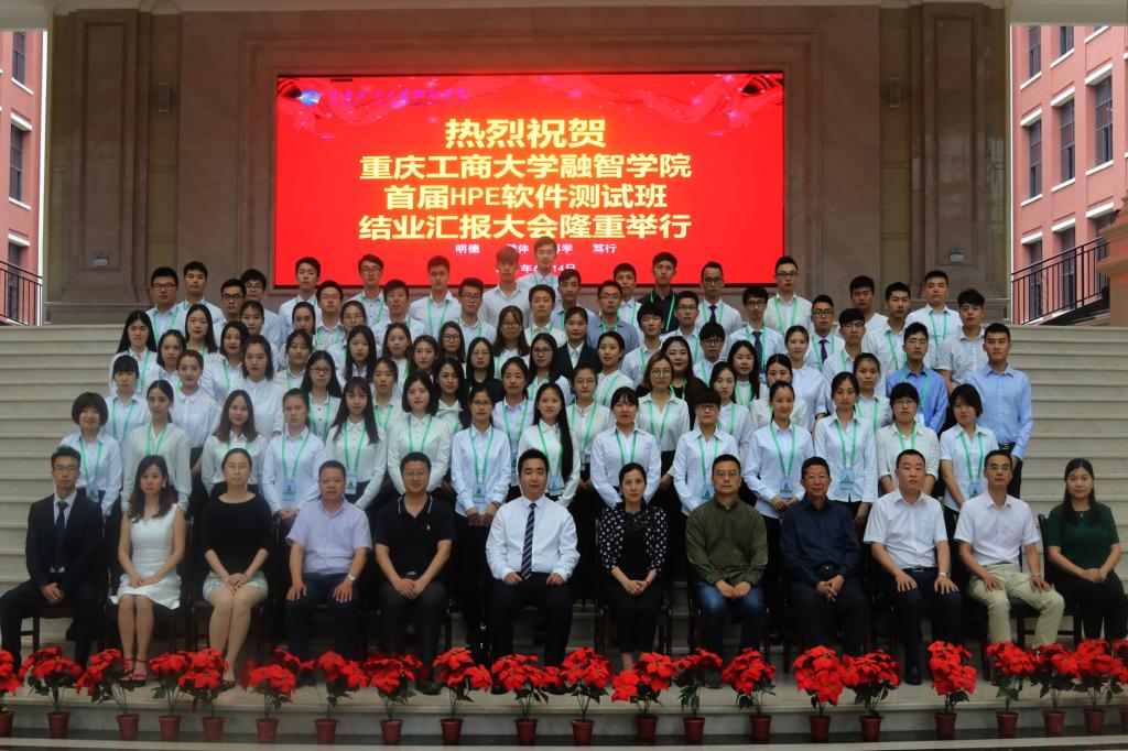 为庆祝重庆工商大学融智学院第一期HPE软件测试班学员顺利结业,2017年6月14日下午,首届HPE软件测试班结业汇报大会在教学楼1206会议室隆重举行。HPE软件教育项目高级顾问赵国帅、HPE软件教育项目技术总监兼HPE软件学院院长张伟、融智学院院长柏群、党委书记丁广龙、副院长吴华安、副书记陈龙国、副院长沈民、院长长助理房朝君、李春雷出席了本次会议。