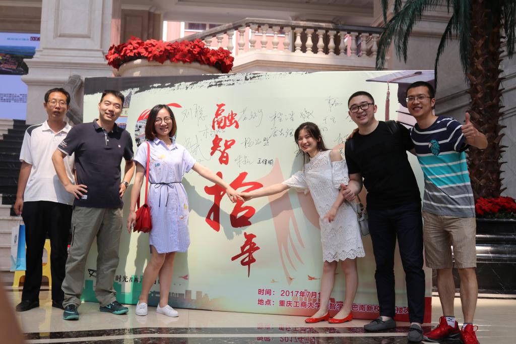 上午10点,阔别十年的2003、2004级校友陆续达到学校。十年踪迹十年心,从井口到巴南,从2007到2017,今天的融智风华正茂,当学长学姐们走进教学楼大厅时,纷纷感叹变的是今天学校办学规模与建筑风格,不变的是融智十年的情怀与精神。学姐学长们在签到后,纷纷在签名墙上留下签名老友相见,大家一同留影纪念,以记录今日的相聚。同时,大家也纷纷留下对母校的寄语,愿母校在未来的办学道路上越走越辉煌,越走越精彩。