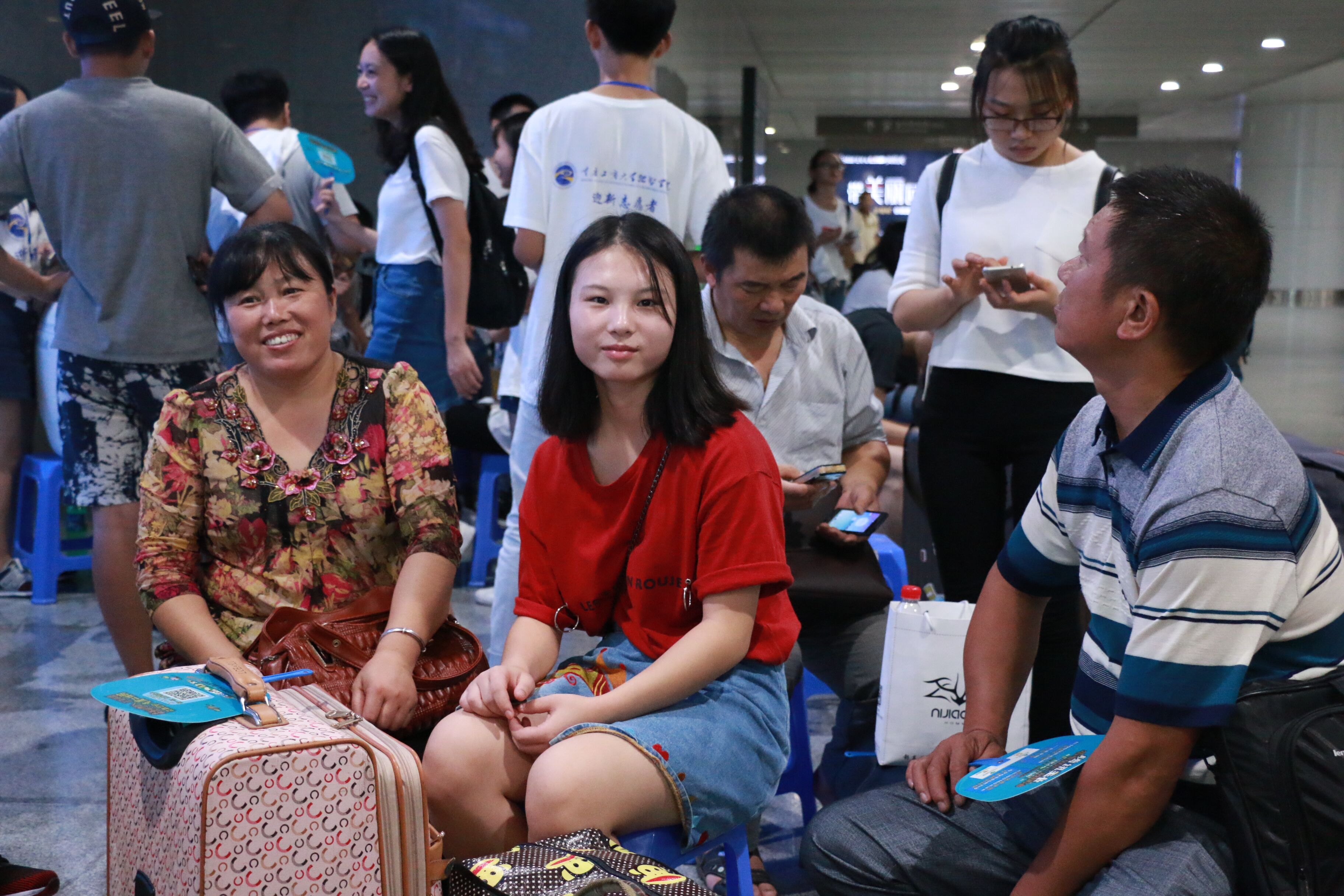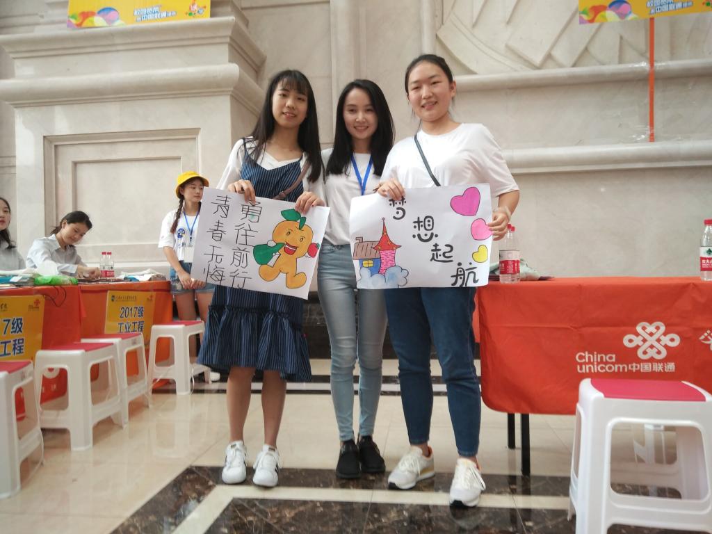 迎新现场,每一个迎新接待处都坐着前来报道的新生,他们的脸上还带着专属大一新生的懵懂和青涩,瞪大了眼睛仔细听着学长学姐们的嘱咐,似乎是唯恐漏了什么重要的事情;也有的安静的待在父母的身边,好似漫不经心,但是从他们四处张望的神态中仿佛也能窥探到他们对大学生活的好奇,好奇那个令许多人心驰神往的大学究竟是什么样子?与高中的生活又有什么不同,又真的如老师所说的那样美好嘛?