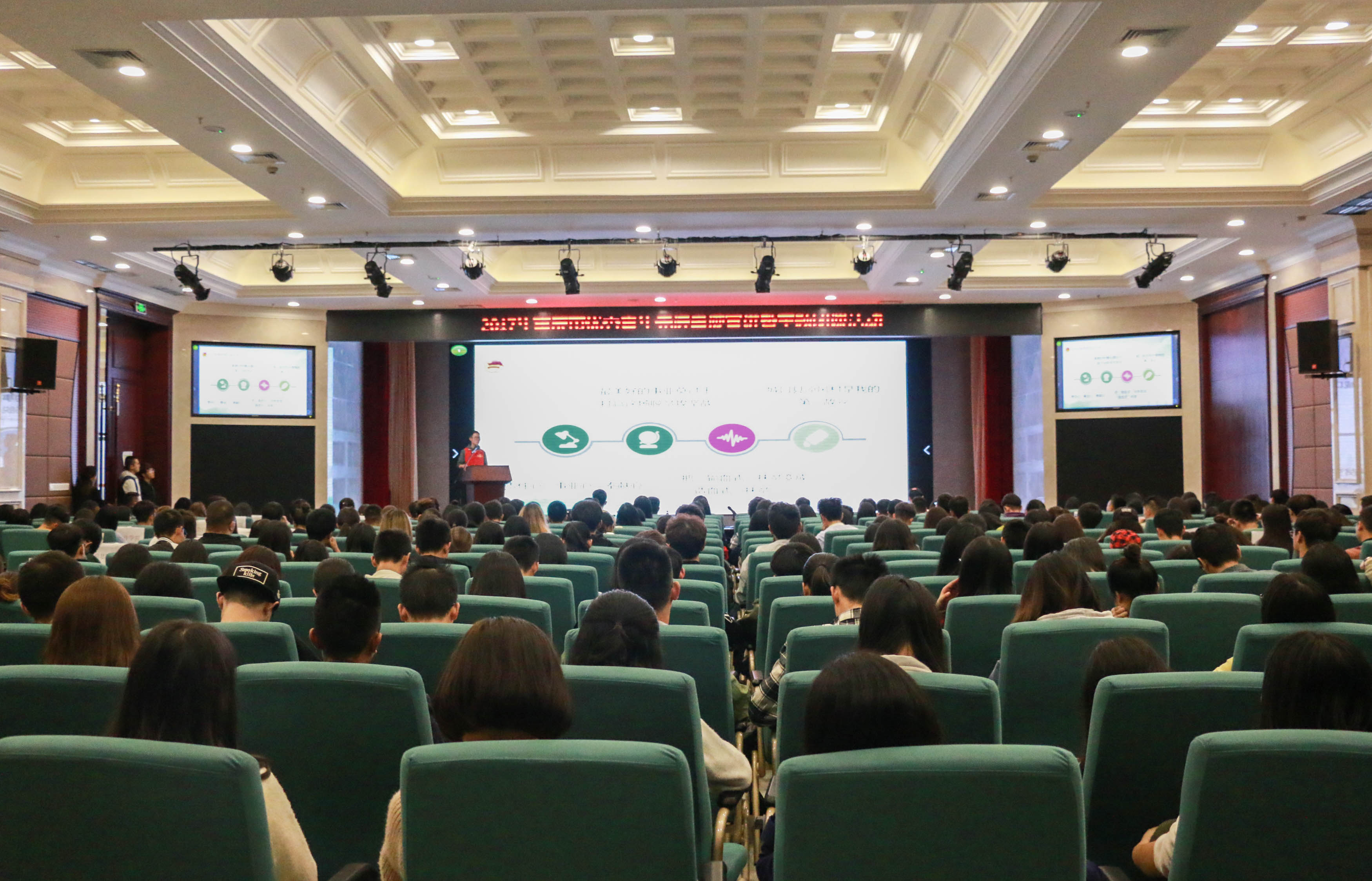 10月12日下午3点,为迎接中国共产党十九大的胜利召开、激励同学们不忘初心跟党走,由共青团重庆市委员会主办,重庆市团校、共青团重庆工商大学融智学院委员会承办的以“青春喜迎十九大不忘初心跟党走”为主题的2017年重庆市优秀青年先进事迹宣讲暨主题团课活动在我校多功能厅举行重庆市团校培训部部长张颖、融智学院学生处处长唐川川、长安集团高级工程师何文、“山茶花”扶贫接力志愿者刘峻潇以及市学联驻会主席宋展飞出席宣讲会。本次活动共有300余名师生参与
