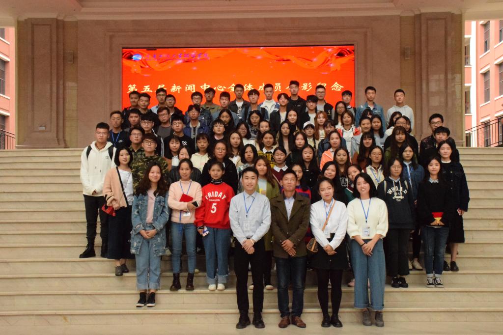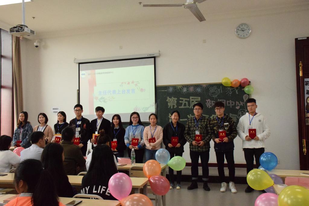 最激动人心的无疑是各主任和部长给新干事授牌。这是那么的神圣而庄严,作为其中的一员我不禁的屏住呼吸,打直背,挺起胸,昂着头,工作牌停留在胸的那一刻,我们深深地体会到自己已经是新闻中心的一份子了。在教学楼大厅新闻中心一键定型家庭照。新闻中心焕发了新的色彩,刹那间希望之花缓缓绽放。