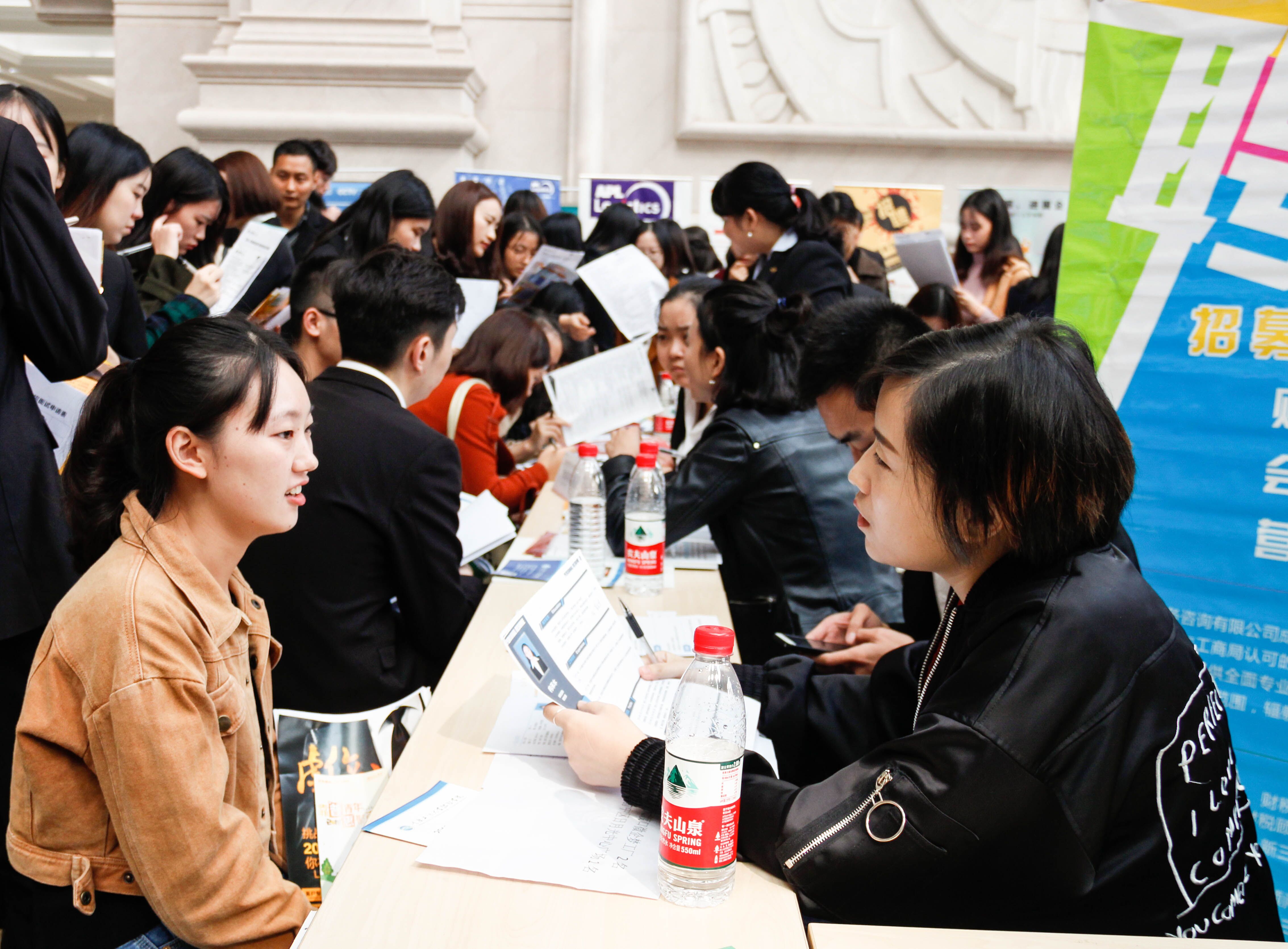 校园双选会力促就业,融智毕业生大展宏图。为推进2018届毕业生就业工作,构建企业与毕业生交流平台,11月3日上午9时,我校2018届毕业生双选会在教学楼大厅开展。230余家用人单位、3500余个工作岗位,1500余名参会学子在本次双选会上得到了全面的互动。