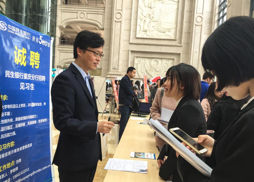 就业一直高校的重点工作,在我校亦是如此。本次双选会从筹备到开展,一直受到学校领导的高度重视。筹备期间,学校领导、各部门、以及各学生组织积极推进相关事宜,学校加大对优质用人单位的邀请力度,通过走访、电话、邮件和信件等方式邀请市内外企业来校招聘,保证了招聘会用人单位质量和岗位质量,充足的准备让本次双选会有条不紊地开展。本次双选会,学校共邀请了包括民生银行、平安银行、中铁十八局隧道工程、重庆永辉、重庆苏宁、金科物业等在内的各类中大型企业来校觅贤,而2018届准毕业生同样以充分的准备、饱满的热情,积极与单位招聘人员进行沟通和交流,展示出融智学子自信的风采。