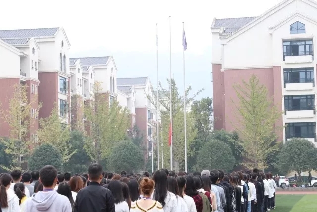 升国旗仪式中,冉冉升起的五星红旗告诉同学们将爱国情怀根植于内心,将一腔热血用于奋斗。