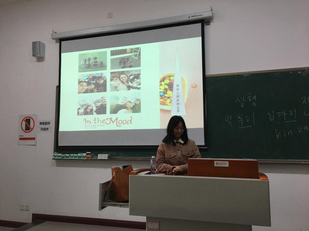 为促进我校与姊妹学校韩国又松大学的进一步合作,增加双方师生的了解与互动,国际合作交流处特邀韩国又松大学驻南京办公室国际项目负责人胡晓天老师及我校2017年赴韩国又松大学交换生吴丹丹同学于2017年11月29日下午14:20在教学楼1504教室与我校师生进行了学习交流,分享了他们的国外生活所见所闻及学习经历。