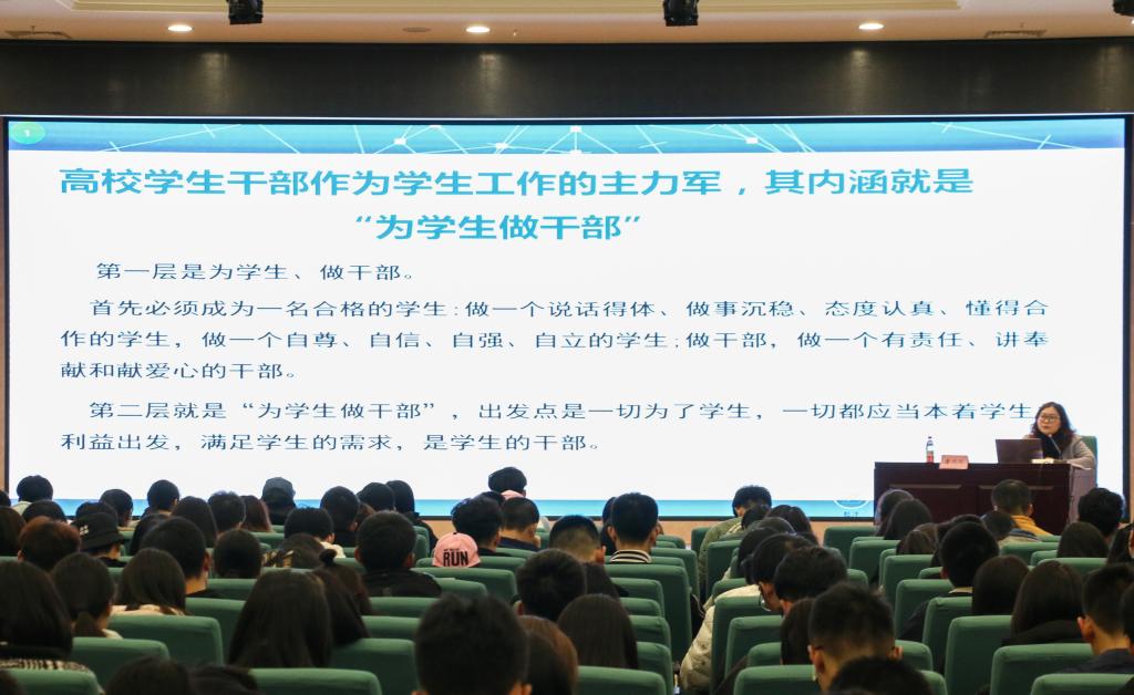 下午14点30分,唐川川处长以“肩负责任,砥砺青春—做新时期的优秀团干部”为话题,开启第六讲。她从角色定位、使命与作用、素质要求及提升途径三个方面向学生干部素质能力提升提出建设性意见。并要求学生干部培养创新、沟通能力,注重细节能力和网络运用能力,提升奉献、合作、宽容、自律四种精神,努力做到习总书记提出的坚定理想信念,心系广大青年,提高工作能力,锤炼优良作风的“四个必须”,做一名新时期优秀的团干部。