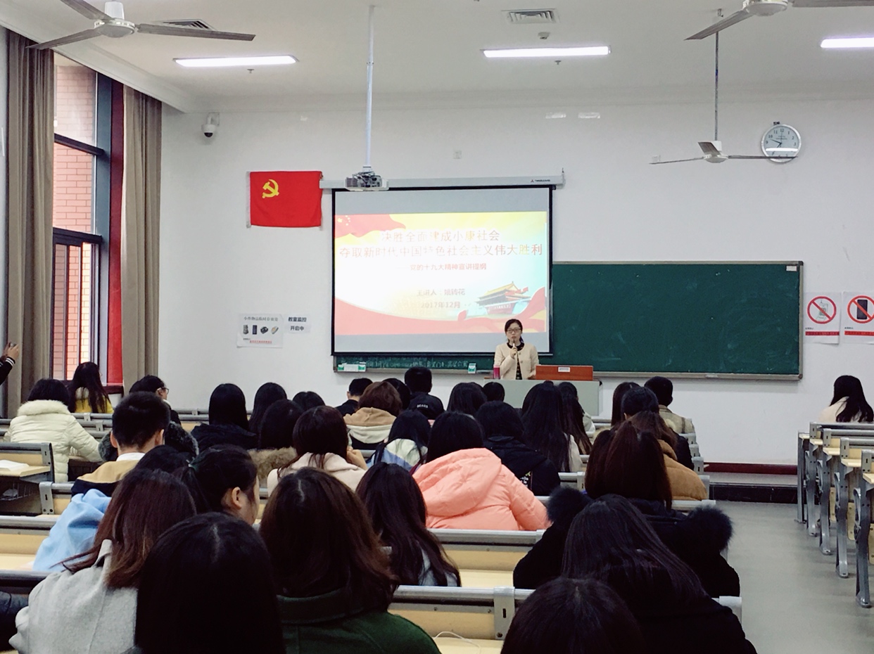 为贯彻落实《中共重庆市委关于把党的十九大精神全面落实在重庆大地上的决定》,在学校党委的安排与部署下,会计学院党总支副书记姚转花老师分别于2017年12月4日、12月8日向会计学院师生开展了十九大精神宣讲会。