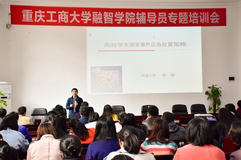 为进一步增强辅导员队伍应对学生突发事件的处理能力,提升我校辅导员专业素质和业务技能,2018年3月15日上午,学生处邀请到西南大学学生工作部副部长周翱,在教学楼1206会议室举办了“高校学生突发事件应急处置策略”辅导员专题培训会。学生处、保卫处、各学院党总支副书记、学团办主任、专兼职辅导员、园区辅导员共计100余人参加了培训。
