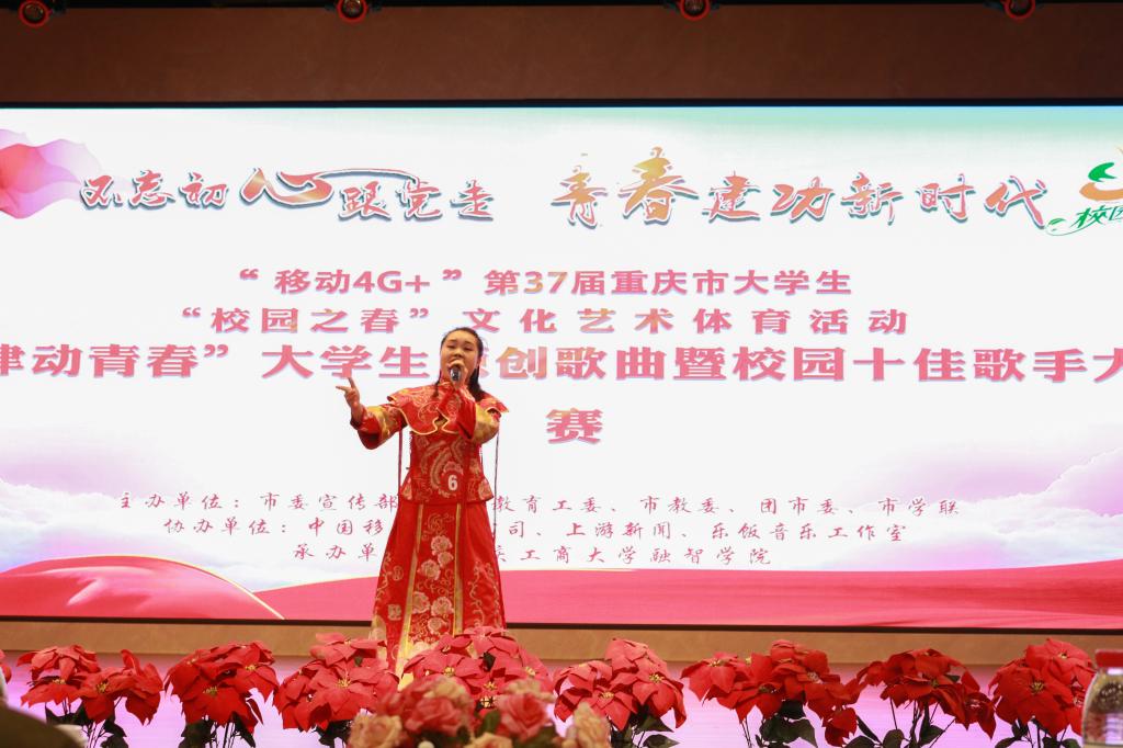 歌手大赛作为“校园之春”活动的重要组成部分,为全重庆市的大学生歌手提供了一个展示平台,为我校学生提供了一个交流学习的机会,丰富了我校的校园文化。青春战场因拼搏而绚丽多彩。梦想舞台因付出而激情昂扬。新时代的青年大学生要深学笃用习近平新时代中国特色社会主义思想,不断增强“四个意识”,坚定“四个自信”,筑牢信仰之基,补足精神之“钙”。自觉把个人的理想追求融入国家和民族的事业中,勇做走在时代前列的奋进者、开拓者、奉献者,在实现中国梦的生动实践中放飞青春梦想,在为人民利益的不懈奋斗中书写人生华章。