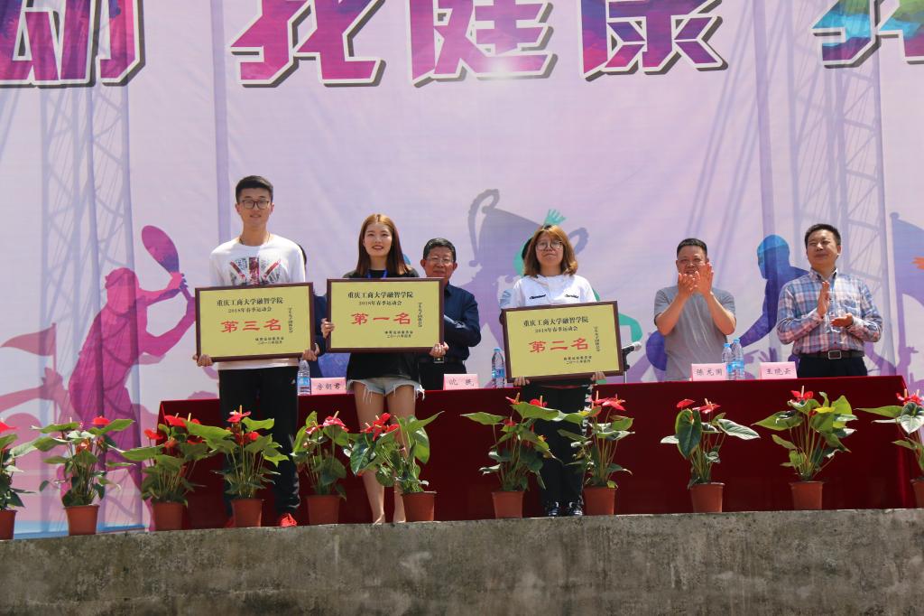 闭幕式上,陈副书记介绍了出席闭幕式的嘉宾,并向取得优异成绩的运动员们表示热烈的祝贺。随后,本次运动会总裁判长贺小卫老师宣布了获奖的学生与教职工代表队,财富管理学院以优异的成绩获得了男子团体第一名的好成绩,会计学院荣获女子团体总分第一名。学生团体总分前三名的分别是会计学院、物流工程学院和商务学院。此外,会计学院工会、物业服务中心代表团、物流工程学院工会为本次运动会教工组优秀组织奖代表队,还有其他许多优秀团体都在本次运动会会中取得了很好的成绩。由出席闭幕式的嘉宾向各获奖代表队颁发了奖牌。