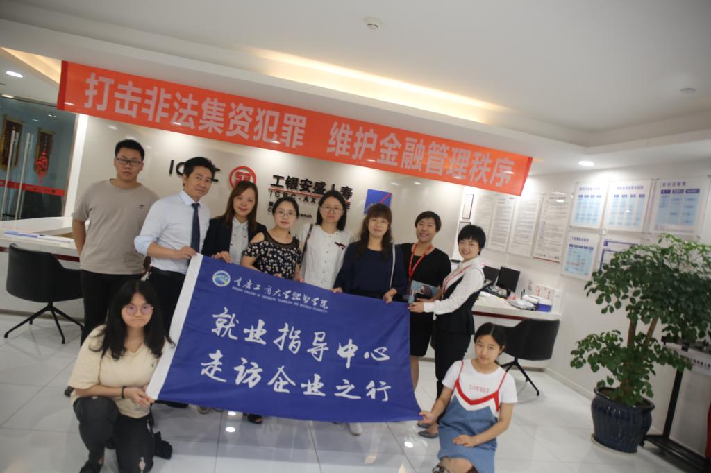 在走访过程中了解到,工银安盛人寿是由中国工商银行、AXA安盛集团和中国五矿集团公司三家股东合资成立,曾获“最佳发展实力寿险公司”荣誉称号。工银安盛人寿两江营业部总经理柳敏介绍了公司发现路径规划、项目人才需求、行业发展趋势以及公司用人标准等。个险顾问渠道总经理袁永强表示欢迎我校毕业生到公司实习就业,也表明公司青睐稳定性强、忠诚度高、有挑战精神的应届毕业生的用人倾向。公司总监张国友先生进一步分析了国家在保险行业方面的政策走向,介绍了公司的工作环境、行业发展空间、员工晋升渠道、福利保障、成长优势等等。在对企业相关情况进行充分了解之后,我校师生与公司几位总经理、主管就后期双方进一步合作细节、学生实习就业时间安排、薪资待遇等问题进行了深入交流。