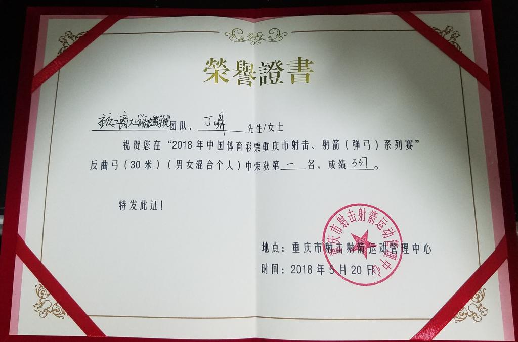 由重庆市射击射箭运动管理中心主办的“2018年中国体育彩票重庆市射箭公开赛(第一站)”于本月19-20日在重庆市巴南区大江小学举行。受重庆市相关部门邀请,我校共派出6位师生前往参加本次射箭比赛。本次比赛共吸引了重庆市十三个代表队共计109位射箭选手参与竞技。经过激烈的角逐,我校运动员顶住压力,克服炎热酷暑等不利因素,最终创出优秀战绩。其中,丁鼎老师斩获竞技反曲弓第1名、杨韩雪老师荣获反曲弓第4名、熊帅民同学荣反曲弓第13名、魏晓芳老师荣获反曲弓第18名、朱晓凤老师荣获反曲弓第19名、彭星源同学荣获反曲弓第20名。以上成绩的获得不仅是个人荣誉的收获,更是对我校课程改革效果的一次大检验,相信我校师生在今后的竞赛中,将会取得更优异的成绩。