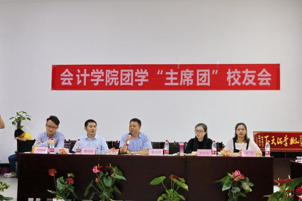 2018年5月26日上午10点,我校会计学院在教学楼1206会议室举办了以“青葱不老,我们在路上”为主题的会计学院团学“主席团”校友会,重庆工商大学融智学院党委副书记陈龙国、会计学院院长谢付杰、会计学院党总支副书记姚转花、会计学院学团办主任李兰、澳门新葡京博彩处老师刘朝峰以及会计学院历届团学“主席团”成员参加了此次活动。
