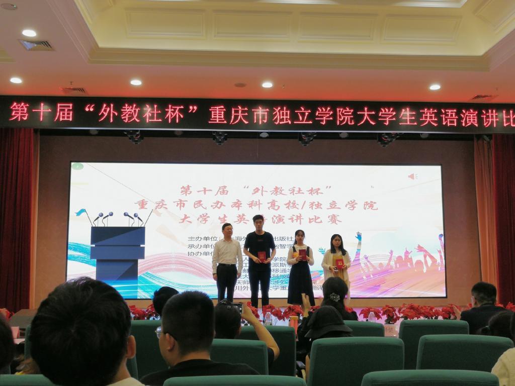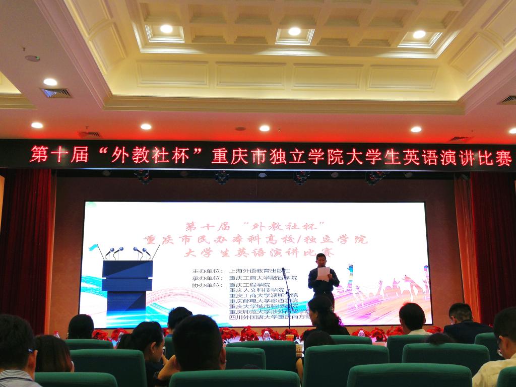 2018年5月26日-27日,由上海外语教育出版社主办,重庆工商大学融智学院承办,重庆工程学院、重庆工商大学派斯学院等七所民办本科高校/独立学院协办的第十届“外教社杯”重庆市民办本科高校/独立学院大学生英语演讲比赛在我校学术报告厅顺利举办。