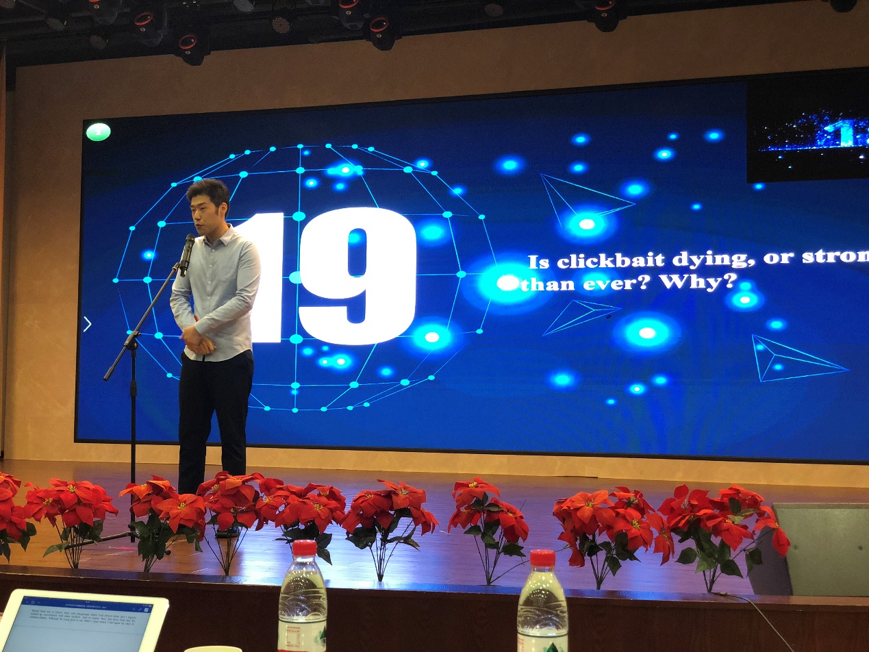 上海外语教育出版社副总编张宏博士对承办方和协办方的各项工作表示感谢,对获得各项奖励的参赛选手表示祝贺,对部分赛题进行点评,并给予同学们更高层次的指引,让比赛选手对赛题有更深入的理解,更加开放式思维回答评委提问。