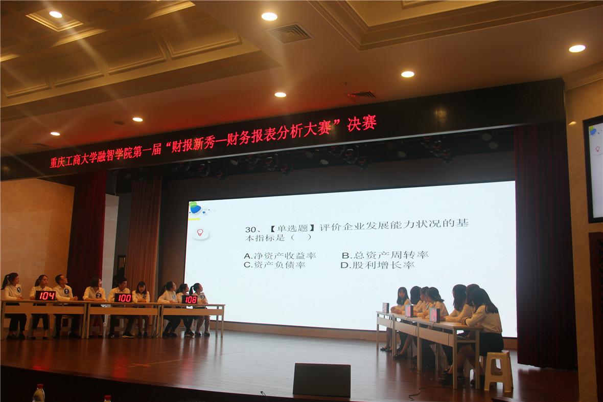 为了提高学生研究与创新精神,加强实践能力,夯实融智学子的专业基础知识,帮助学生初步了解企业的经营方式、经营流程和市场竞争机制,为职业生涯打下良好的基础。2018年5月30日,重庆工商大学融智学院财富管理学院第一届“财报新秀——财务报表分析大赛”决赛在教学楼学术报告厅成功举办,比赛进行了同步直播,增强了与场外互动。