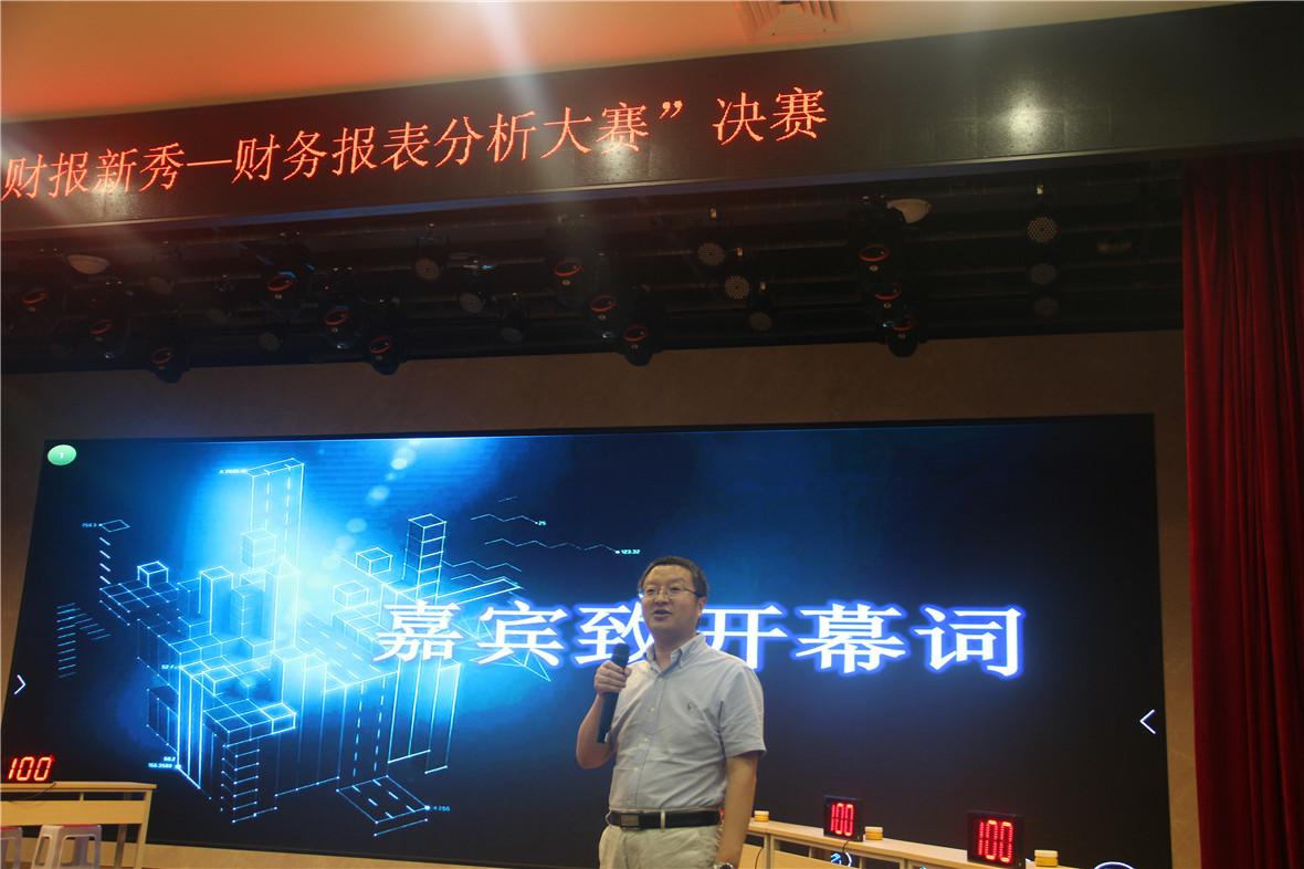 比赛正式开始前,重庆工商大学融智学院吴华安副校长为本次比赛致开幕词。他首先向到场的评委、嘉宾、老师和同学表示热烈欢迎和衷心感谢。其次,他说到:财务报表分析大赛契合了学校“五优五实”的办学理念和“做产教融合先锋,建民办高校典范”的办学愿景,倡导了在校学子了解社会经济的发展动向,培养了同学们利用所学专业知识结合实际案例分析问题,解决问题,以增强自身的专业素养和自身能力。最后,他衷心的预祝此次比赛取得圆满成功!