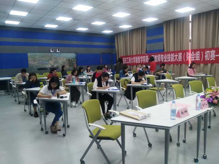 开幕式结束后,分别在1220教室和1409教室举行了第一届教师专业技能大赛(财会组)初赛的理论知识测试和会计账务处理两个环节的竞赛。