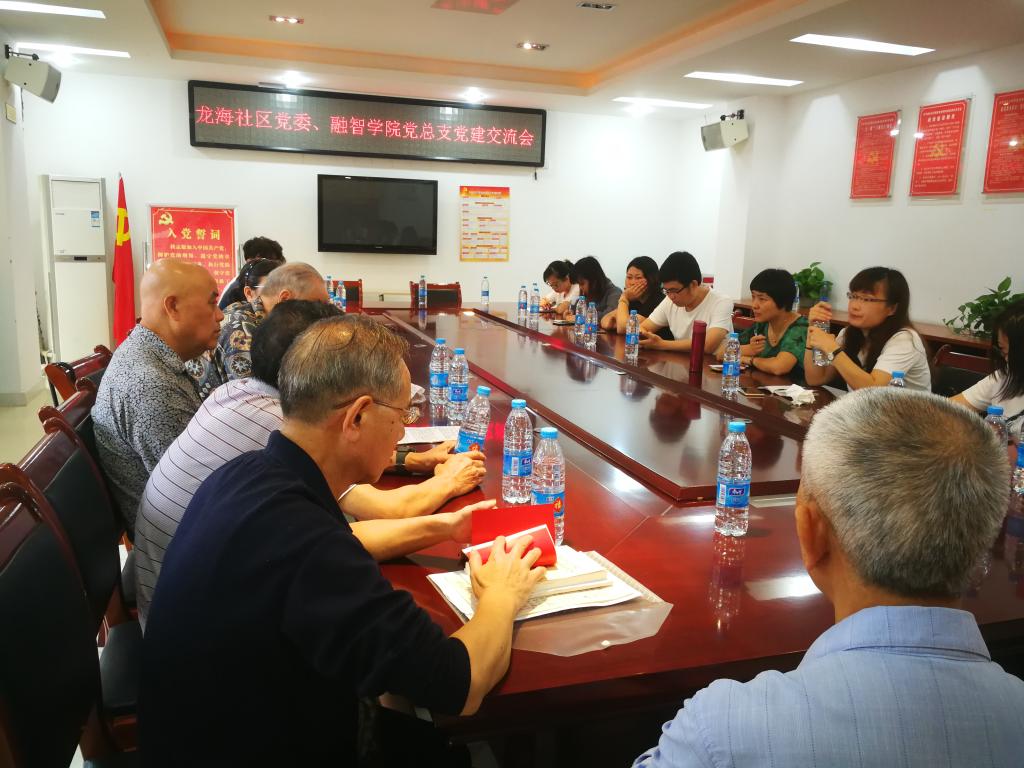 为深入学习贯彻党的十九大精神,以实际行动践行“两学一做”,加强对我院党员的思想政治教育。6月15日上午,管理工程学院党总支副书记高雪莲老师、教师支部书记邹江老师学生支部书记范雪林老师带领学院六名教师党员、三名学生党员代表前往巴南区龙洲湾龙海社区,召开了一次特殊的组织生活会。围绕加强党性修养与社区的六名老党员同志展开交流与学习,收获了诸多关于党性锻炼和党员担当的新思路。