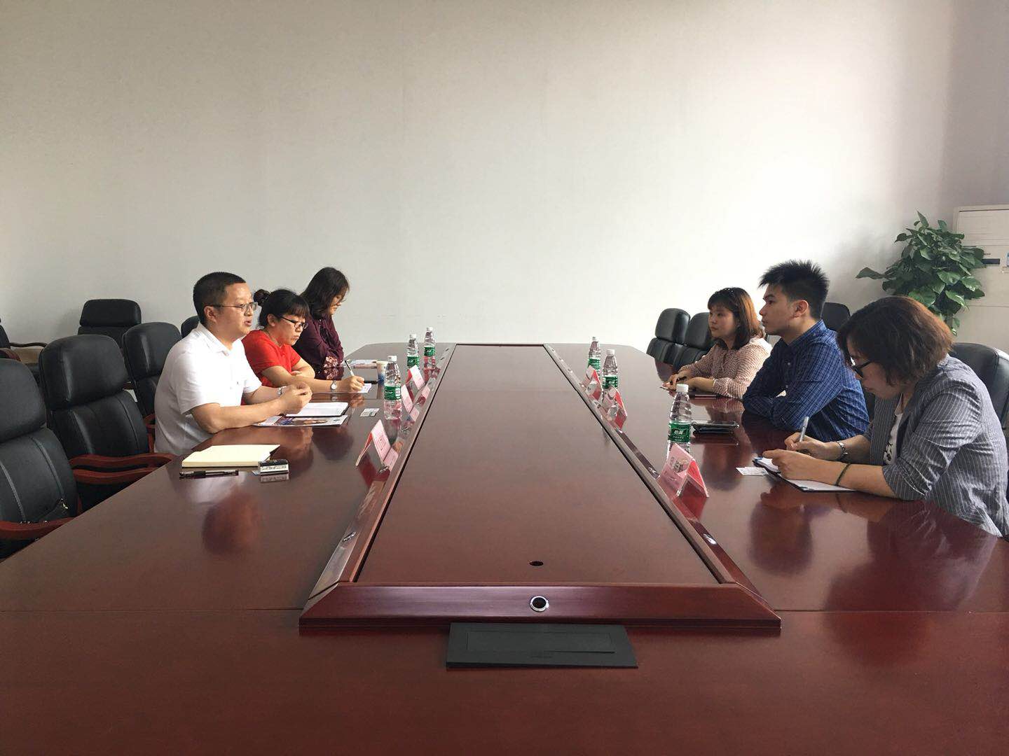 2018年6月22日上午10点,马来西亚亚太科技大学代表Chin Long Yu一行到我校考察访问。我校吴华安副校长,国际合作交流处石转转处长,李慧老师,学生代表李静琳在1205A会议室接待了来访嘉宾。