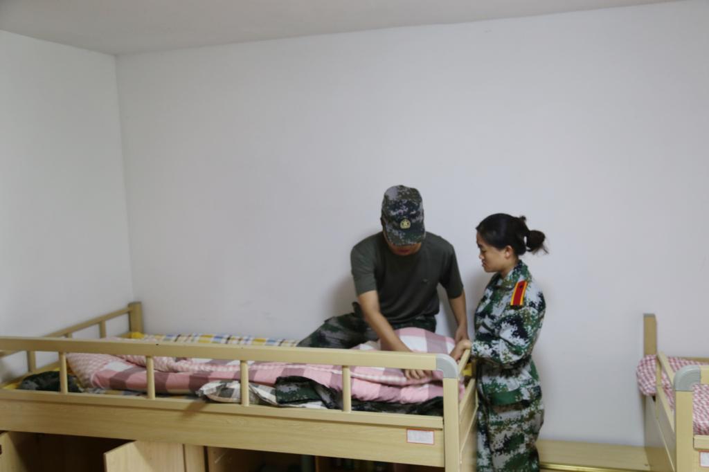 勤以为先,整理内务便是军训最好的考验。军训前的我们即使不是“衣来伸手、饭来张口”,也是“两耳不闻窗外事,一心只读圣贤书”,对于内务的整理是极少的。把被子叠成“方块”,牙刷毛巾整齐放置,衣服按序折叠等等高标准高要求的内务整理,不仅仅是军事训练的一项内容,也是我们对自己的生活起居的一种改善,更是为接受祖国的挑战所做下的准备。